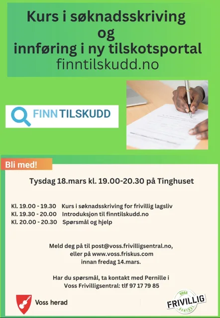 Påmelding innan fredag 14. mars til post@voss.frivilligsentral.no